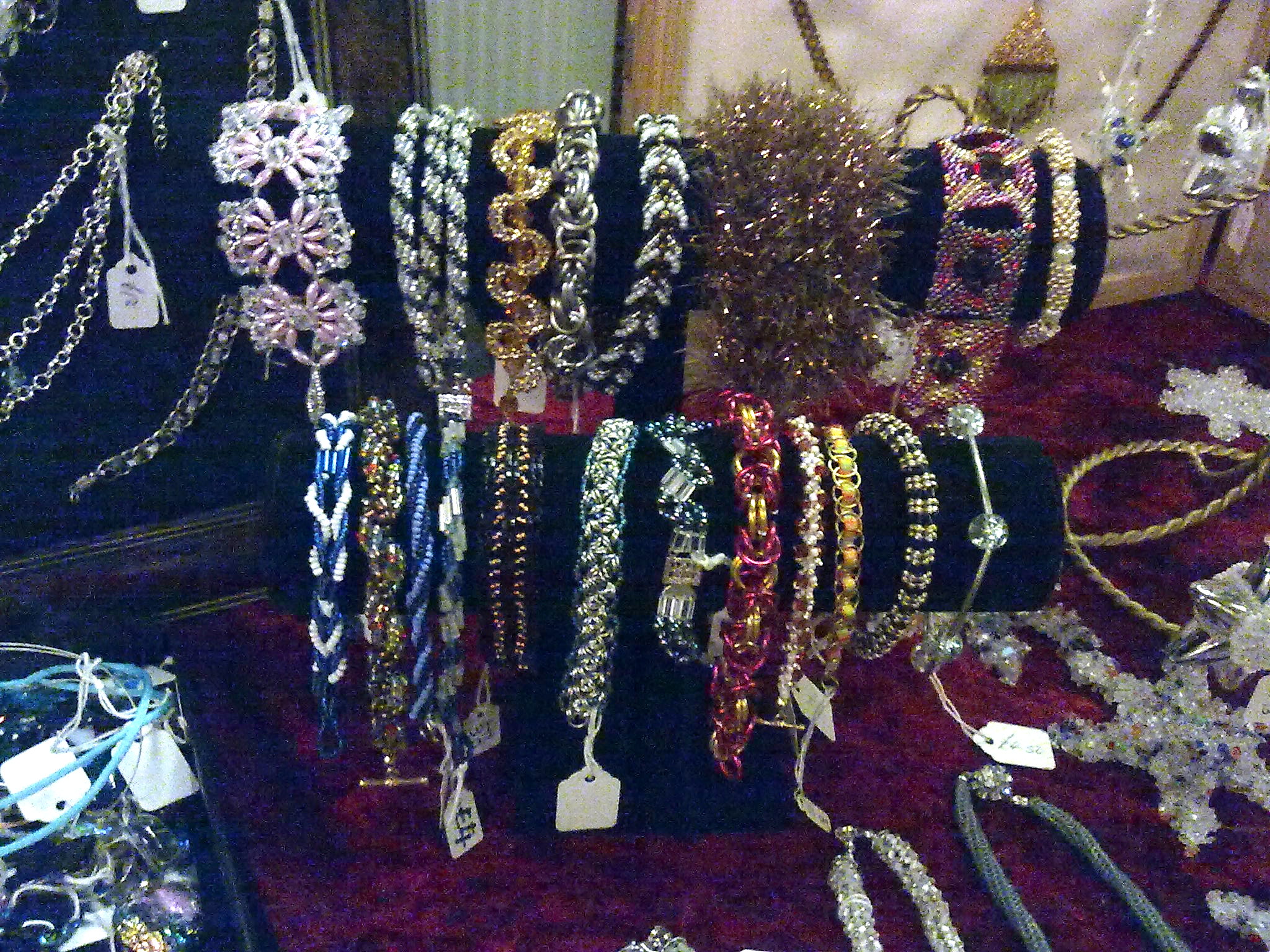 In addition to the make-up demonstration, there was a selection of beaded jewellery on sale for us to peruse. It had all been designed and made by Carol Lacey, and there was quite a wide variety of items to choose from, including rings, brooches, pendants, necklaces and even one or two ornaments! A number of us came away with some pretty and unusual pieces that you wouldn’t see in the shops.