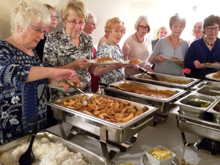 A change is as good as a rest, they say, and for our March meal out the committee decided to book The Queen’s Head, Little Wenham. As it turned out it was a great decision! Mark and Patsy gave us a very warm welcome and had laid on a hot, serve-yourself buffet in their spacious dining room, with choices of tasty dishes such as a chicken tagine, chicken tikka masala and a lamb casserole. There was rice, jacket potatoes, chunky chips and extra seasonal vegetables too. Desserts followed, including apple crumble and custard, chocolate fudge cake and fresh fruit salad with cream. The two dozen Capel Ladies Club members who attended were all very happy with their meals, and there was a jolly atmosphere in cosy surroundings. We will definitely be returning to The Queen’s Head for second helpings at some point!