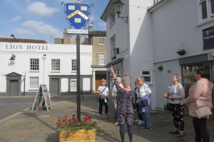 We then moved on to the Market Place where Gill explained the symbols on the Hadleigh sign, the lamb for the Lamb of God, the V stood for ermine, meaning purity and the 3 woolsacks for the wool trade. She talked about the wool trade and how it brought wealth to East Anglia and also a little about how the wool goes from fleece to cloth. She spoke about carding the wool and Irene in our group discovered the origin of her surname Carder! The market got its Royal charter in 1252, and is still held regularly every Friday morning on the Market Place just off the High Street.