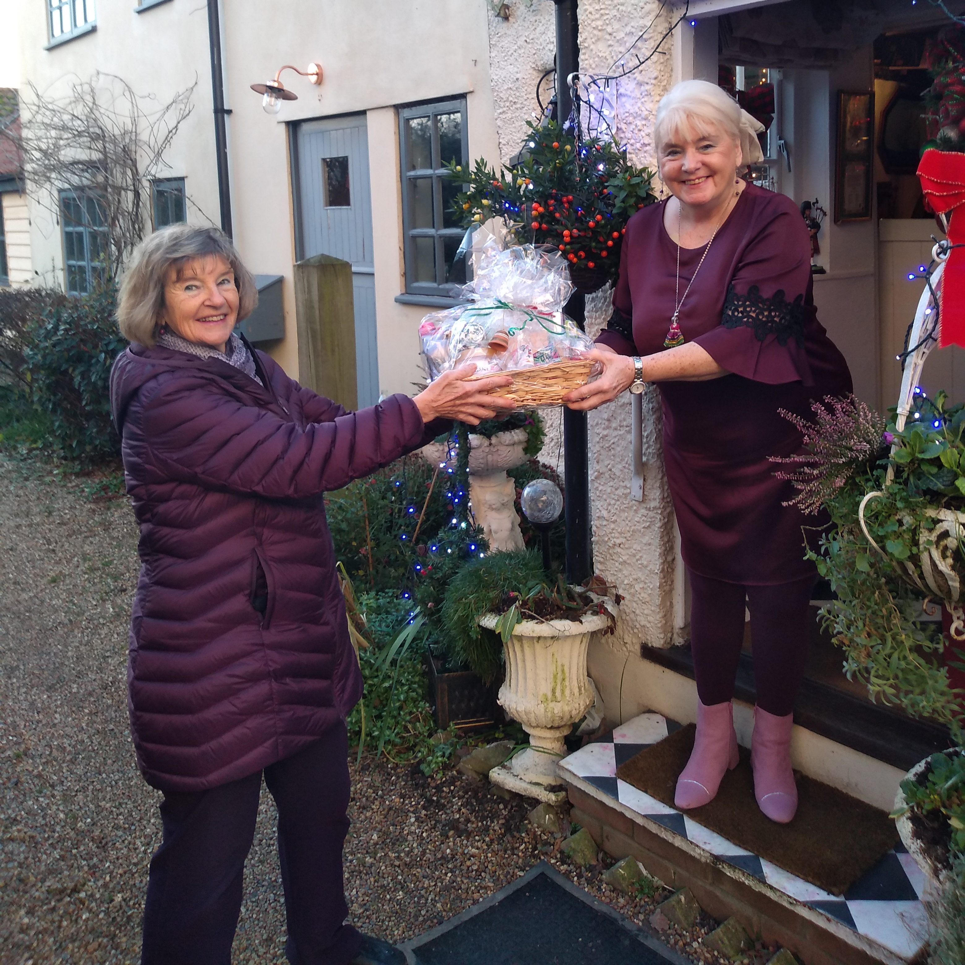 Someone who was feeling particularly positive just before New Year was Cathy Sweeney, the Capel Ladies Club member who won the virtual draw for the Pamper Hamper during our virtual Christmas Social! Here she is being presented with her prize by our Chairlady Mary Butters! Our second winner, who won the Food Hamper in the same draw, was Beryl Backler. Thank you to Penny Thompson and Wendy Keeble who were responsible for filling the hampers with goodies!