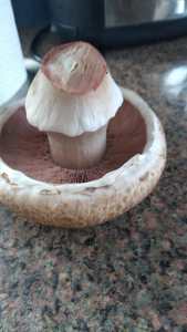 Having received a family Christmas present of a mushroom-growing kit, we set it up following the instructions, (which came in ten languages!), and waited for the suggested period of three weeks for results. As time went by there was little evidence of much happening – except for just ONE tiny mushroom. Gradually this little bump began to develop – and then it literally MUSHROOMED before our very eyes! Fearing it might explode we decided to pick it (carefully!) and prepare something edible… It weighed in at 165grams – the weight of a normal punnetful! We found a suitable mushroom recipe for a lunchtime delicacy on toast – and it really was DELICIOUS! The growing kit suggests at least three crops are possible, and currently a second one of at least six is coming along nicely, as is our new enthusiasm for Fungiculture! Watch this space for future Lockdown activities!