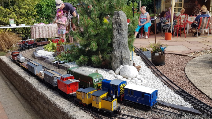 On 7th July a party of us went to see the Orchard Players’ latest show in the Community Centre. It was entitled “Into the Light”, and it was an evening of songs – and dances – from many different genres with some brilliant performances from younger members, as well as the seasoned regulars and the live band. A fun, foot-tapping evening – CONGRATULATIONS Orchard Players! My overall favourite number was the Victoria Wood classic, “Barry and Freda” – Let’s Do It! Finally, to end a busy month, Capel Ladies manned the refreshments stall at Rose Chiverton’s Open Garden Event in aid of the Blossom Appeal, our charity for this year. Rose’s garden is unique as it includes a permanently laid out model railway track with working trains. These can all be operated with remote hand-held controllers, and visitors to the garden had great fun sending the trains going, over the bridge and round the circuit! There were stalls selling plants and pink items as well as tea and home-made cakes to try! It was a scorching afternoon and the men’s singles final was on the tele, so although it was a fair turnout, we might have had even more visitors on a cooler day with no other distractions!