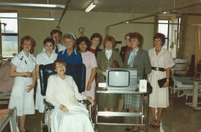 Capel Ladies present a colour TV to Ipswich Hospital, October 1985.